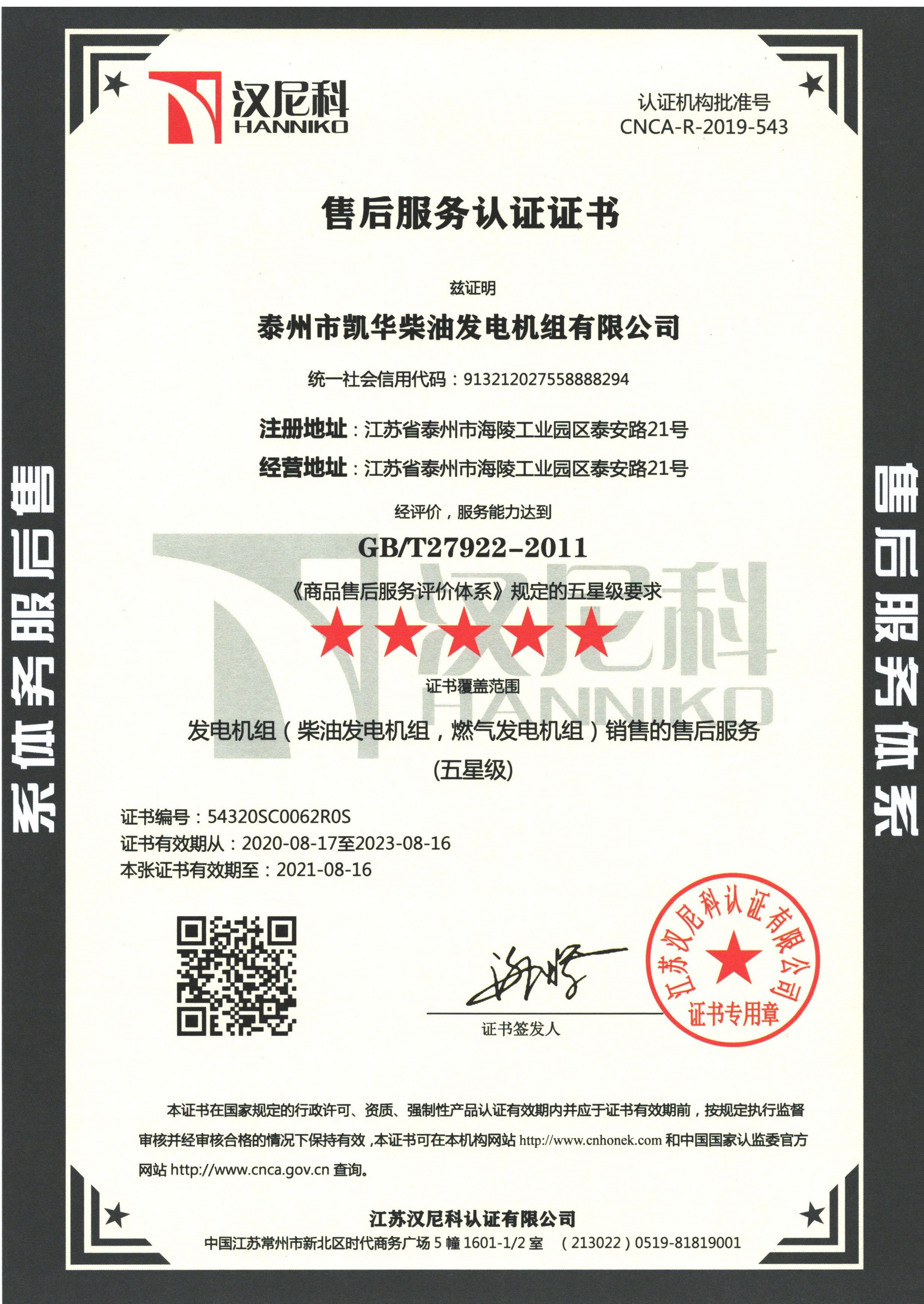 泰州市凱華柴油發電機組有限公司創建于2003年,是一家集柴油發電機組燃氣發電機組的研發、生產、銷售為一體的高新技術民營企業,公司座落于“漢唐古郡,淮海名區”,具有“鳳凰城”美稱的祥泰之州——江蘇省泰州市,地處中國經濟最發達的長三角經濟圈,水陸空立體交通,地理位置十分優越。公司目前注冊資本金11800萬元人民幣,生產基地占地六十畝,現有各類高素質員工一百多名,專業技術人員達46人,其中高級技術人員16人,年銷售額近6億元。